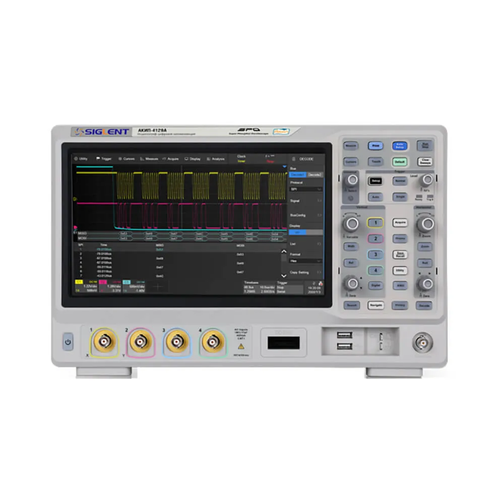 - Синхронизация и декодирование сигналов, стандартно, I2C, SPI, UART/RS232, CAN, LIN, опционально, I2S, MIL-1553, FlexRay, CAN FD.