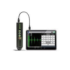 Подключение планшета, смартфона или другого устройства на базе ОС Android, позволяет расширить возможности толщиномера EM2210 до уровня современного дефектоскопа, с возможностью отображения и сохранения А-скана, B-скана, возможностью работать со стробами, выбирать режим измерения толщины, параметры обработки сигнала и т.д.