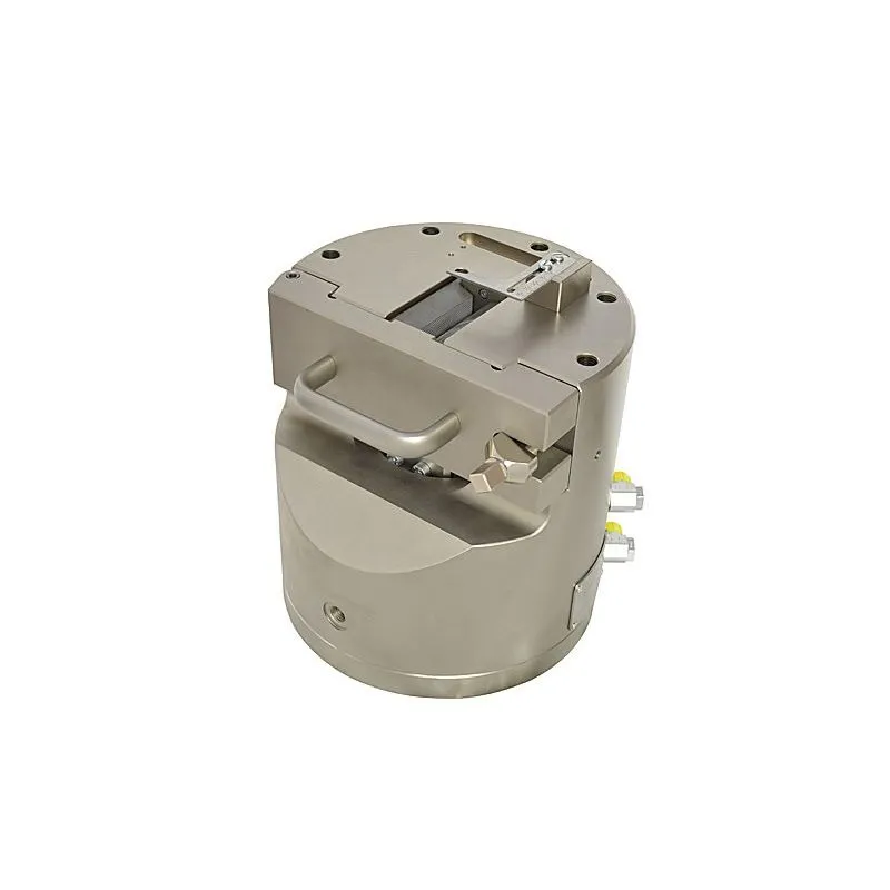 Захват гидравлический предназначен для испытаний стальных материалов толщиной (диаметром) до 30 мм, макс. усилие зажима 250; 600 кН. Имеет один рабочий вертикальный шток. Отличительная особенность конструкции – наличие щитка в виде откидной створки.